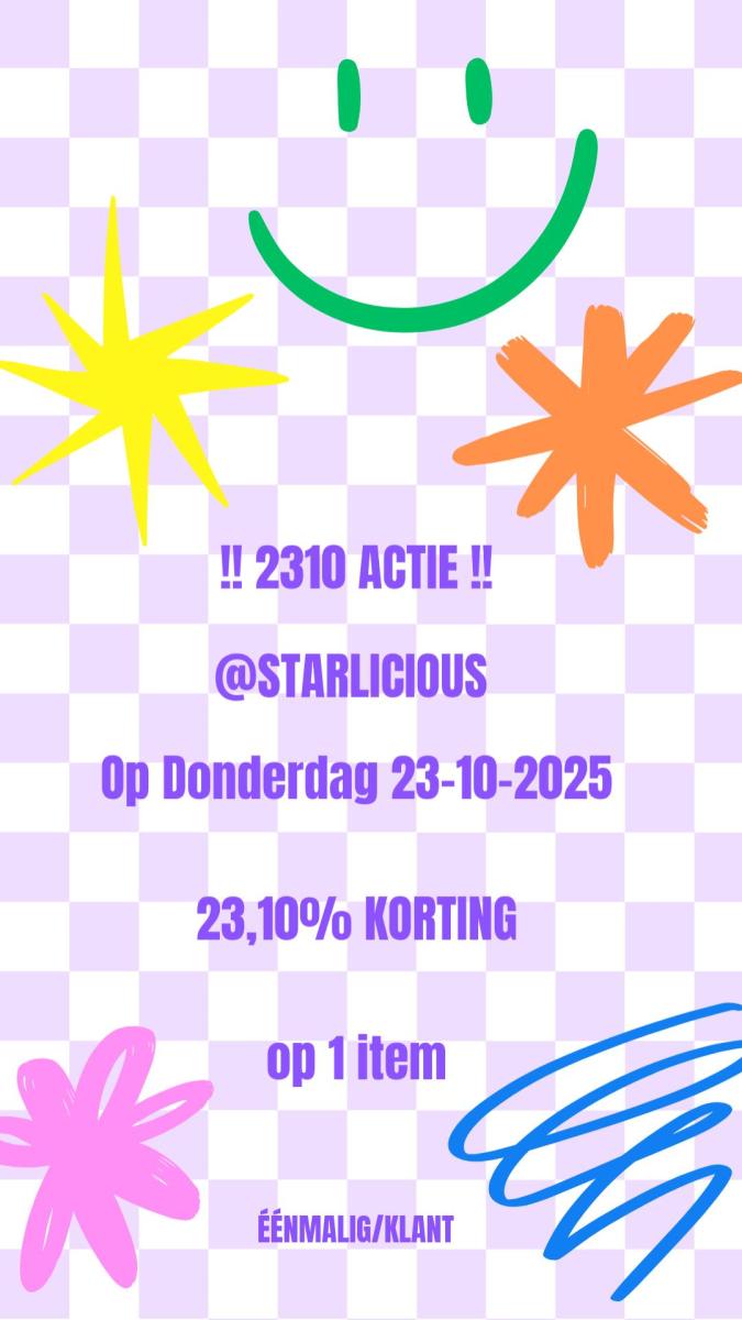 - Op donderdag 23/10 krijgt iedere klant 23,10% korting op 1 item. Deze actie is eenmalig geldig per klant.