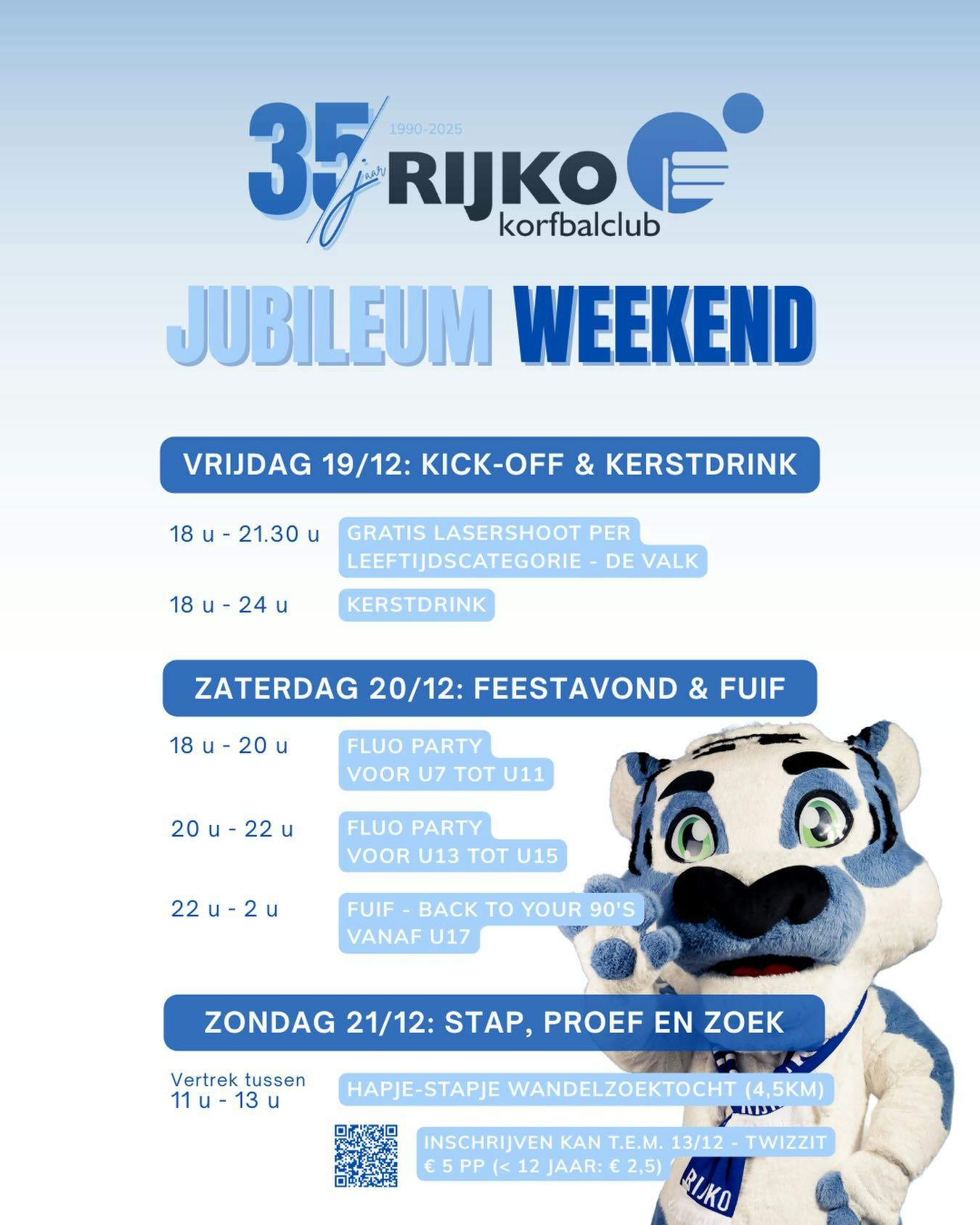 We trappen het jubileumweekend van 35 jaar Rijko af met lasershooten en een kerstdrink. Iedereen van harte welkom om samen het weekend in te klinken!