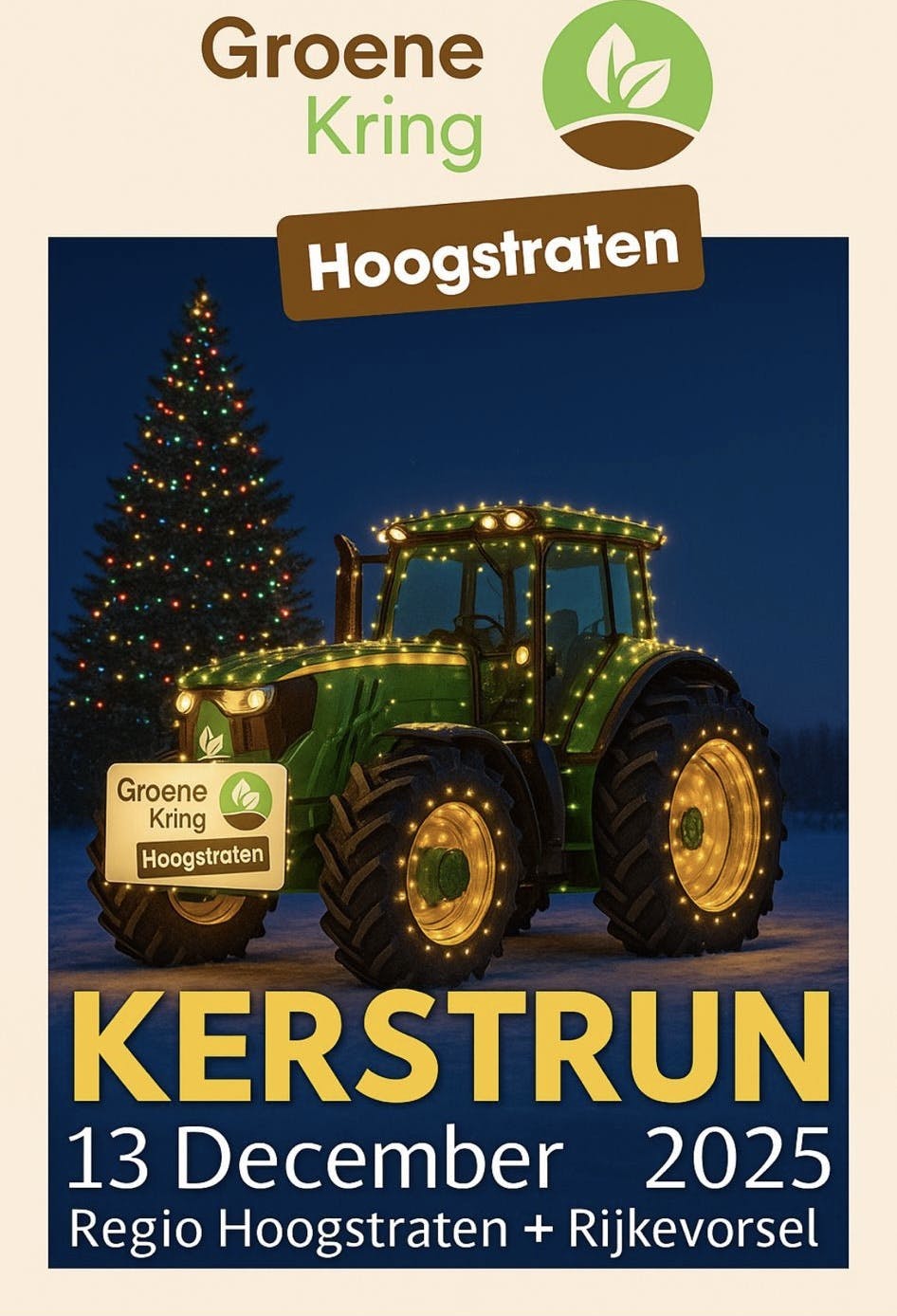 Op 13 december komen de tractoren van Groene Kring Hoogstraten terug naar Rijkevorsel. We verwachten ze rond 20.30 uur in Rijkevorsel. Ook iedereen welkom op de eindbestemming aan parking Zwarte Leeuw.